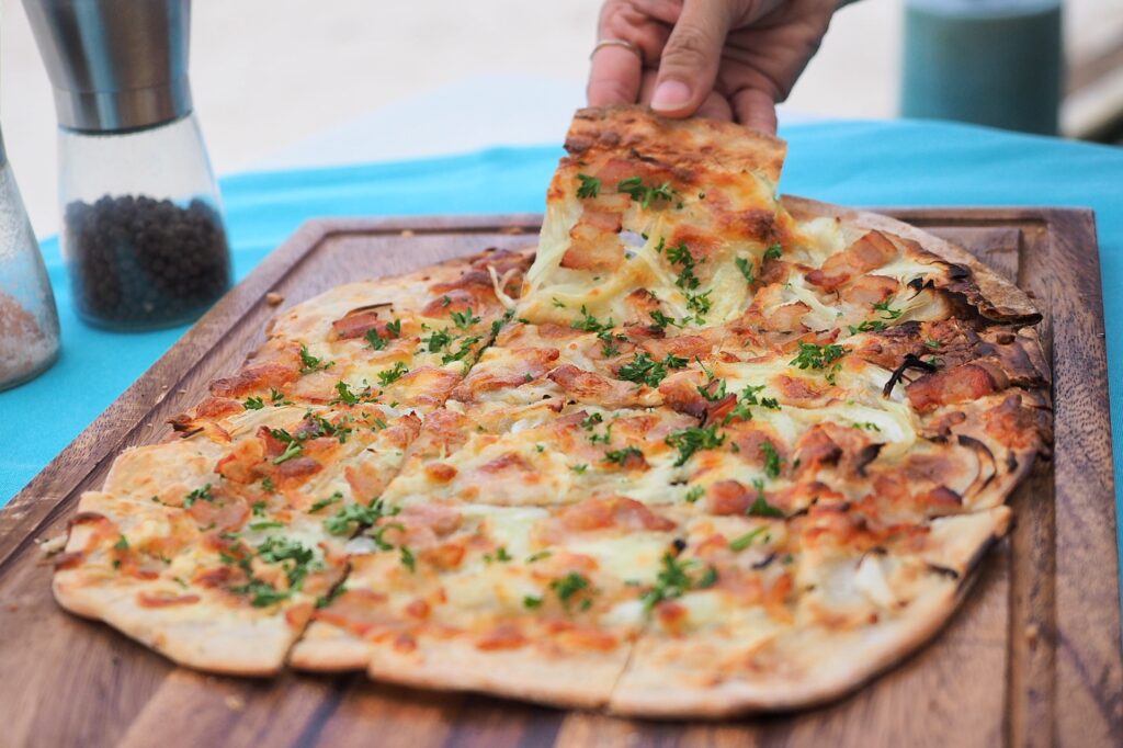 อย่างรอบนี้ที่ได้ลองไปทานกันมาก็มี Tarte Flambe เป็นแผ่นแป้งอบคล้ายๆ พิซซ่าของชาวฝรั่งเศส-เยอรมัน ที่มีความบางกรอบ ทานกันเบาๆ เพลินๆ ดี